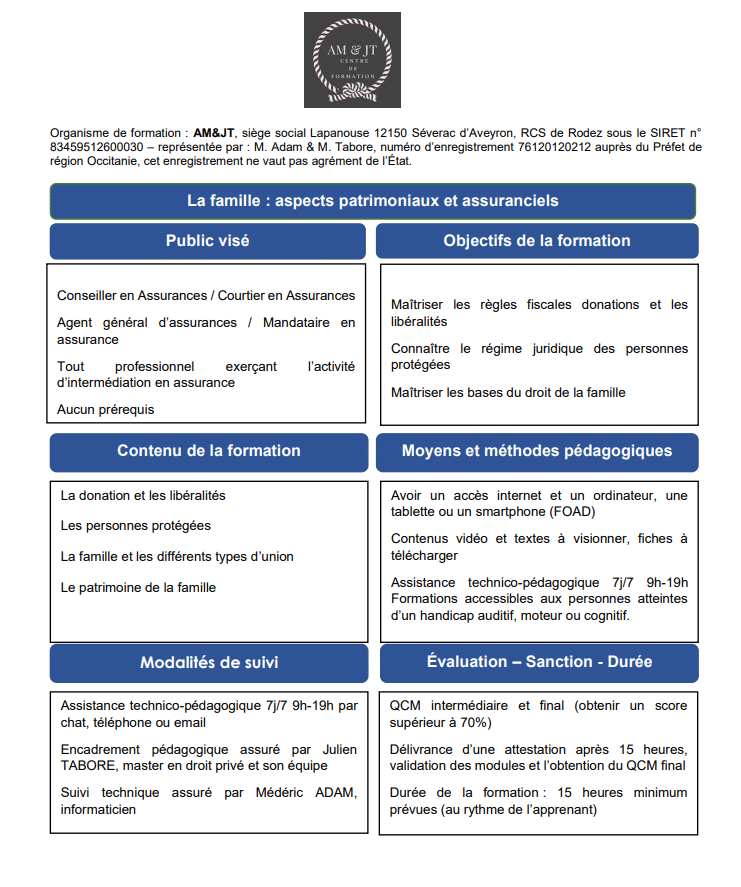 Formation DDA Famille : aspects patrimoniaux et assurantiels (15H)